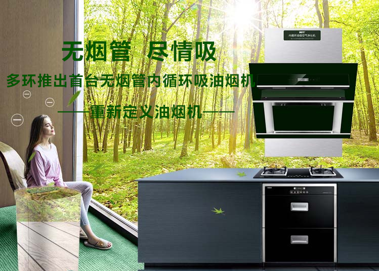 無煙管內(nèi)循環(huán)吸油煙機是采用高科技手段將廚房及烹飪場所產(chǎn)生的油煙及有害氣體在室內(nèi)進行凈化處理的一種電器設備。目前國內(nèi)、國際尚無該種設備的先例。上海多環(huán)油煙凈化設備有限公司科研團隊從解決社會大氣污染及凈化家庭室內(nèi)空氣出發(fā)經(jīng)過多年的研究和實驗開發(fā)生產(chǎn)出了一種適合國人烹飪需要的內(nèi)循環(huán)式油煙凈化機,它的主要特點是采用吸排凈化一體機的形式將烹飪產(chǎn)生的油脂、煙顆粒物及有害氣體(醛、苯、VOC等)、異味(辣、臭、酸味等)和有害細菌在室內(nèi)進行凈化處理,實現(xiàn)了廚房油煙向室外不排放,室內(nèi)室外無污染,解決了廚房油煙氣體排放污染環(huán)境的世界性難題。本公司研發(fā)生產(chǎn)的無管式油煙凈化機是不用煙管對外排放的油煙凈化設備,采用吸排凈化一體機的形式將烹飪產(chǎn)生的油脂、煙顆粒物及有害氣體(醛、苯、VOC等)、異味(辣、臭、酸味等)和有害細菌在室內(nèi)進行凈化處理的廚電產(chǎn)品。